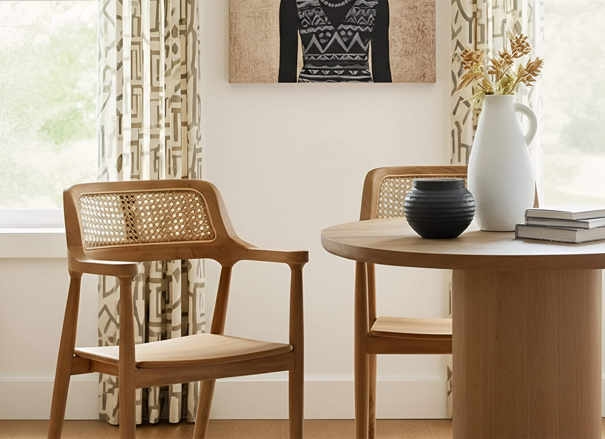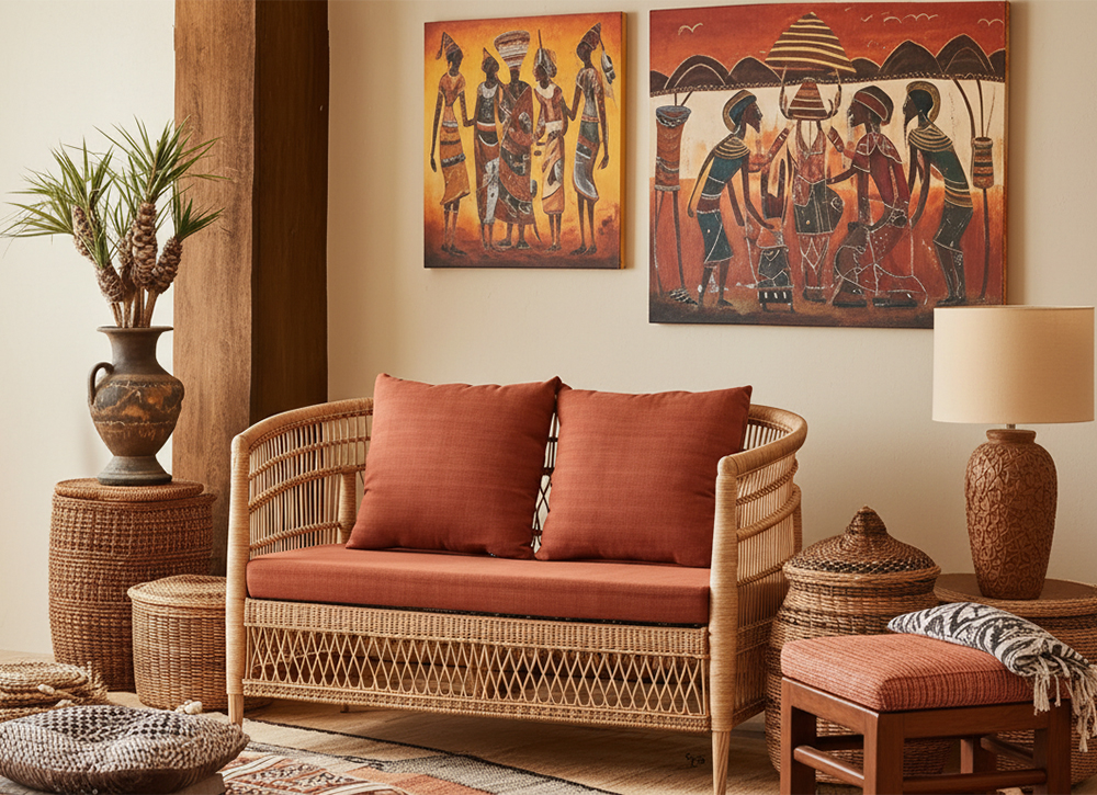 The Afro-bohemian atmosphere is an invitation to escape, a vibrant tribute to craftsmanship and the beauty of roots. It draws its inspiration from African cultures and their ancestral know-how , where each creation celebrates the splendour of raw materials. At Uniqka, this universe is translated into pieces that seem to have travelled through time and across borders to find a permanent home in your interior.