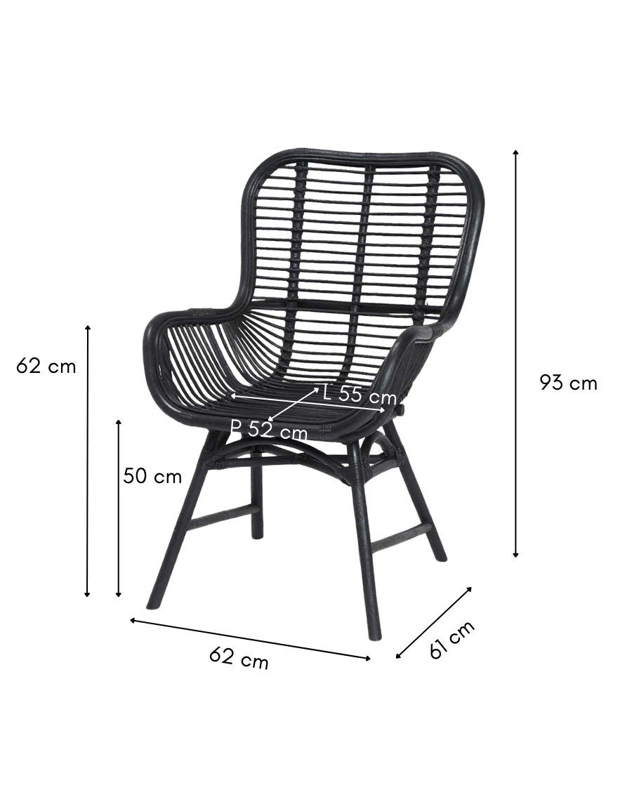 Sapporo - Chaise en rotin salle à manger noire