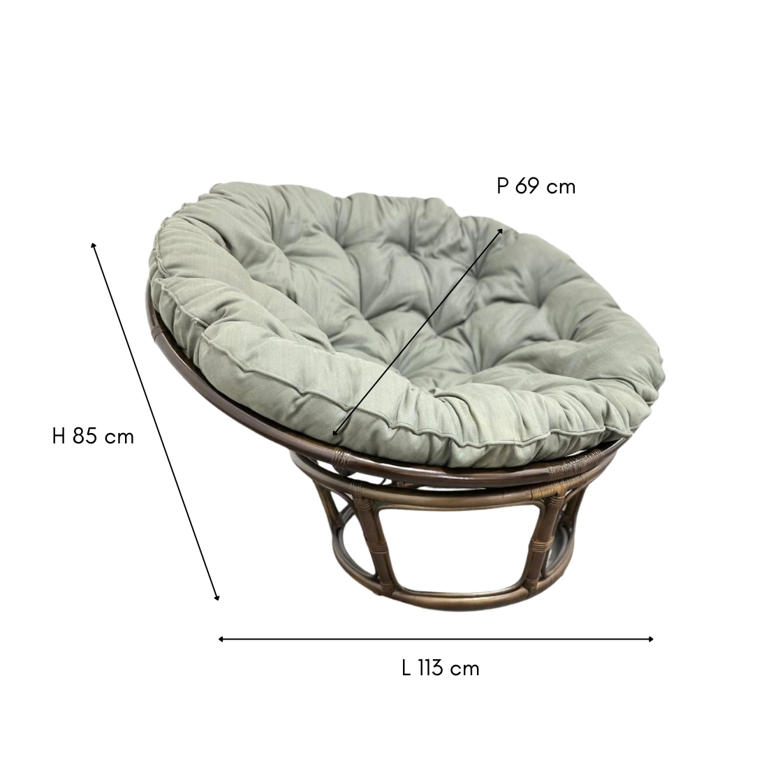 Un nuage de douceur. Profitez d'un instant de pur bonheur, et détendez-vous dans l'assise moelleuse du fauteuil rond en rotin avec coussin gris Papasani. Avec sa forme circulaire et son coussin blanc floconneux ce fauteuil en rotin vous offrira un robuste cocon, auquel vous devrez vos meilleurs moments de détente. Extrêmement solide, son assise a été conçu de brins de bambou et de rotin finement entrelacés. Quant au coussin douillet il est lui aussi très résistant et faceile à nettoyer.