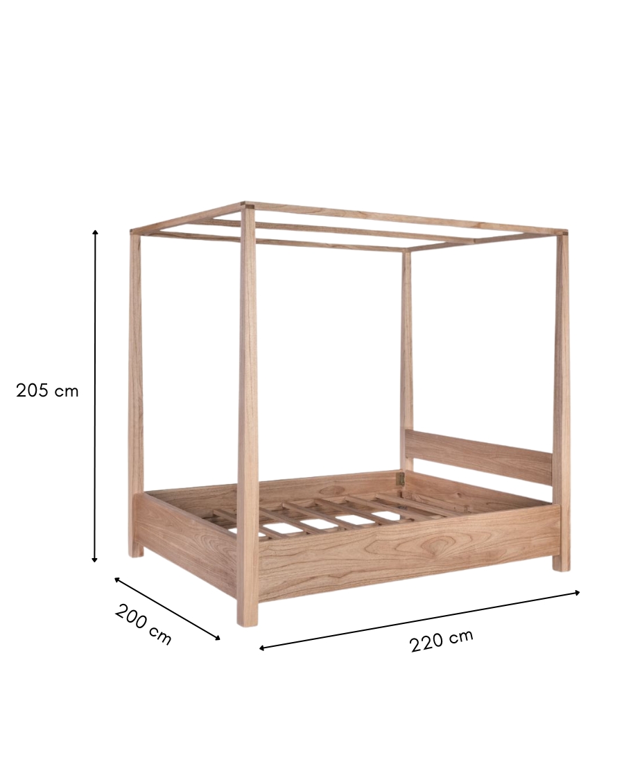 Lit Baldaquin en Bois Massif JAVA - 180x200 cm en Teck Naturel