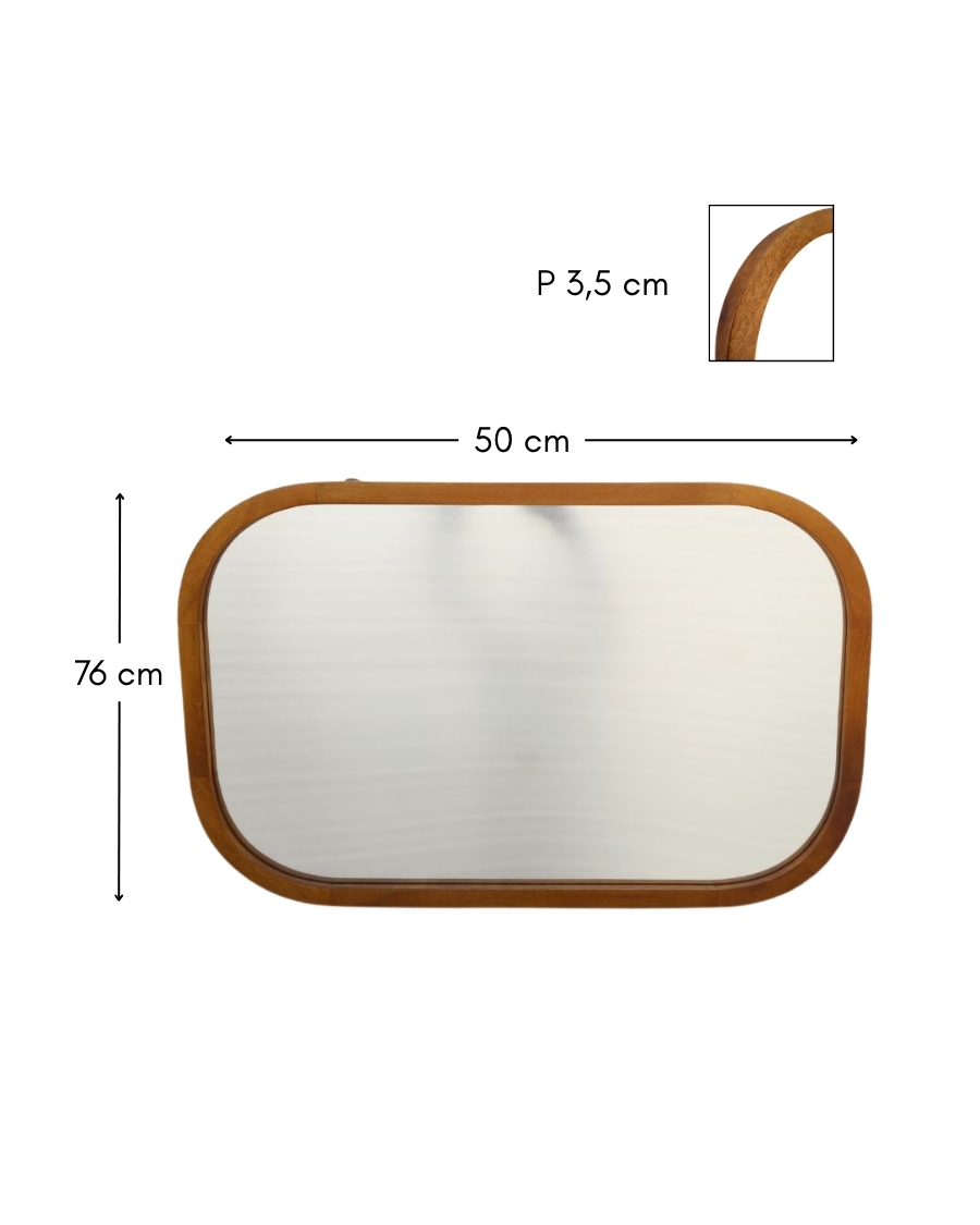 Fabriqué de manière artisanal dans du bois massif de manguier, chaque miroir est unique et ajoute une chaleur authentique à votre salle de bain. Sa forme classique et son design minimaliste lui permettent de s'adapter facilement à différents styles de décoration.